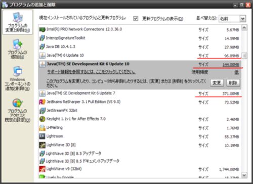 Java 6 Update 10が出たので、ちょっとインストールしてみてあれ? Update 7とくらべて1/2ですよ?どうしたんでしょう。 余談。この画像をはてなにアップロードするとき、Flash 10を入れたFirefoxではアップロード選択フォルダがでてこなかった…。