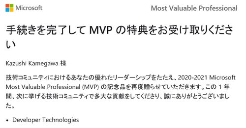 One more year! ということで、今年も何とかMVP Awardを Developer Technologiesのカテゴリーで受賞できました(10回目です)。みなさんのおかげです、ありがとうございます。 世界的なCOVID-19流行のために、今までのようなある程度の人数を集客してという…