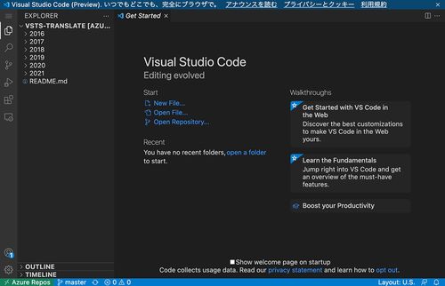 GitHubではGitHubレポジトリ開いている状態で . (ピリオド)を押すと、github.dev での簡易編集(Codespacesとは別)ができることはよく知られていました。 code.visualstudio.com 同じMSのものなのにAzure Reposではできなくて悲しかったのですが、この度vsc…